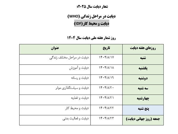 پیشگیری، مدیریت و ارتقای کیفیت زندگی با دیابت، در کل دوره زندگی اهمیت دارد.